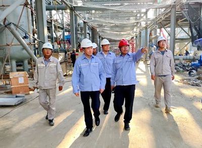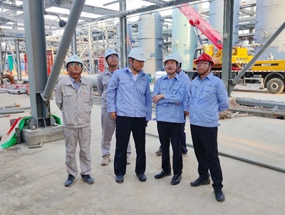 8月20日,北京石油化工工程有限公司党委书记、董事长许缄涛带队到公司总承包的湖北荆门源晗电池材料有限公司电解液全驱体项目20万吨/年乙醇装置(含电子级乙醇)开展实地调研。当前项目总体进度达70%,其中设计工作全部完成,采购进度完成86%,施工进度完成65%,各项工作正按计划有序推进。公司总经理助理张文立、项目负责人陪同调研。