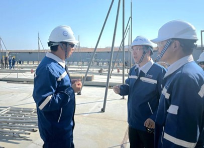 随后,尹长炳赶赴Salalah油库项目现场开展专项调研。该项目设计进度已超98%,进入收尾阶段,土建施工与设备安装工作全面铺开。针对项目推进中的难点问题,尹长炳与现场施工团队、设备安装团队及项目管理团队深入座谈,重点了解阿曼当地项目在技术标准、施工工艺、资源调配等方面与国内项目的差异。针对现场施工中遇到的特定技术问题,尹长炳现场协调设计团队与施工团队精准对接,共同研讨优化解决方案,明确整改方向和时间节点,确保施工高效有序推进。