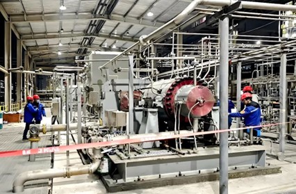 作为乙醇生产流程中的核心设备,5台压缩机组承担着气体循环、加压输送等关键任务。其中,3台离心式压缩机负责一氧化碳、氢气等反应气体的高效循环与补给,保障羰基化、加氢等反应单元稳定运行;2台往复式压缩机则在系统压力调节和物料循环利用中发挥重要作用。经2小时试运行监测,压缩机主电动机电流、轴承温度、震动值等参数均符合设计要求,机组运行平稳,一次性试车成功。