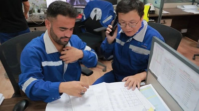 从油库主体施工的图纸复核、技术交底,到码头至油库管道建设的现场技术指导,再到施工过程中的设计细节优化,两名工程师每天深入各个施工作业点,与中阿施工团队、联合体合作方现场管理人员紧密沟通对接。针对现场施工中可能出现的设计与实操衔接问题,他们结合项目实际情况及时调整优化技术方案;为保障施工精度,对每一个施工环节的技术参数进行反复核对确认,确保施工全过程严格契合设计标准,用专业的技术能力为现场施工扫清技术障碍,保障项目建设平稳推进。
