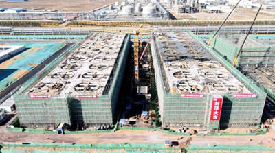 北油工程承建榆林化学二期给排水消防装置冷水塔结构封顶