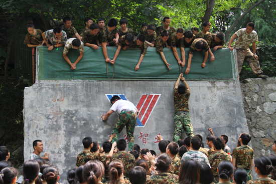 团队项目中,103名队员仅用了29分钟就成功翻越了4.3米高的毕业墙,团队的胜利使毕业生们体验到集体的力量,体会到甘于奉献的伟大,树立了相互支持、精诚团结的团队精神和合作意识。